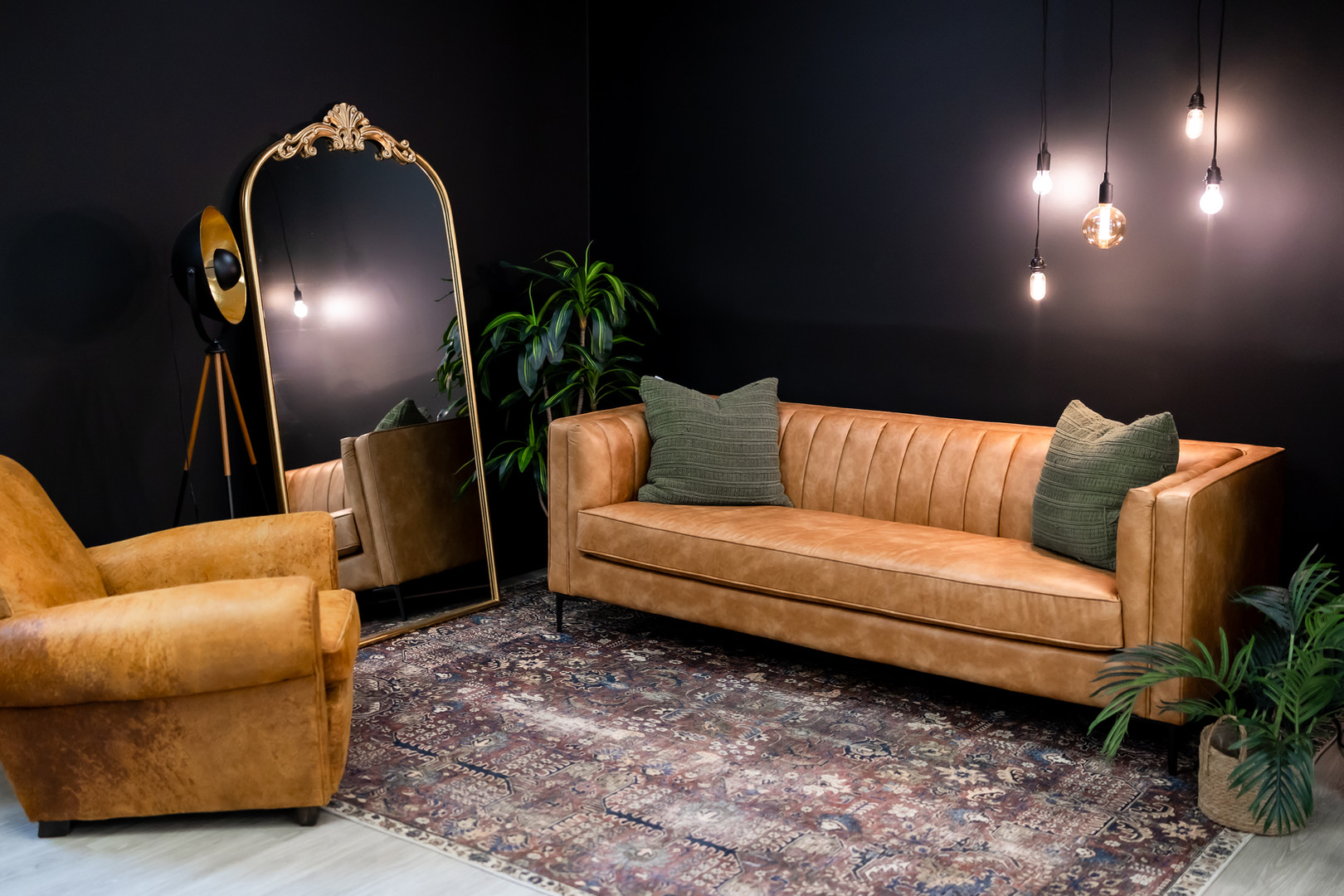 Full lighting details are on the What's Included page. We use constant LED lights — plug in, switch on, and you’re lit. Two lights are in the main space (LED wall and Lume Cube XL); the rest are in the prop room, ready when you are.
